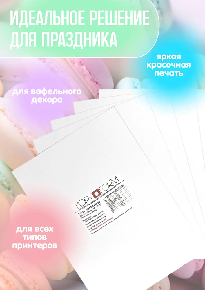Пищевая печать на вафельной бумаге открывает перед вами мир возможностей для творчества и фантазии. Теперь вы можете легко наносить на десерты любые изображения, надписи или узоры, которые захотите. Благодаря этому материалу вы сможете создавать по-настоящему уникальные и запоминающиеся десерты, которые поразят всех ваших гостей.